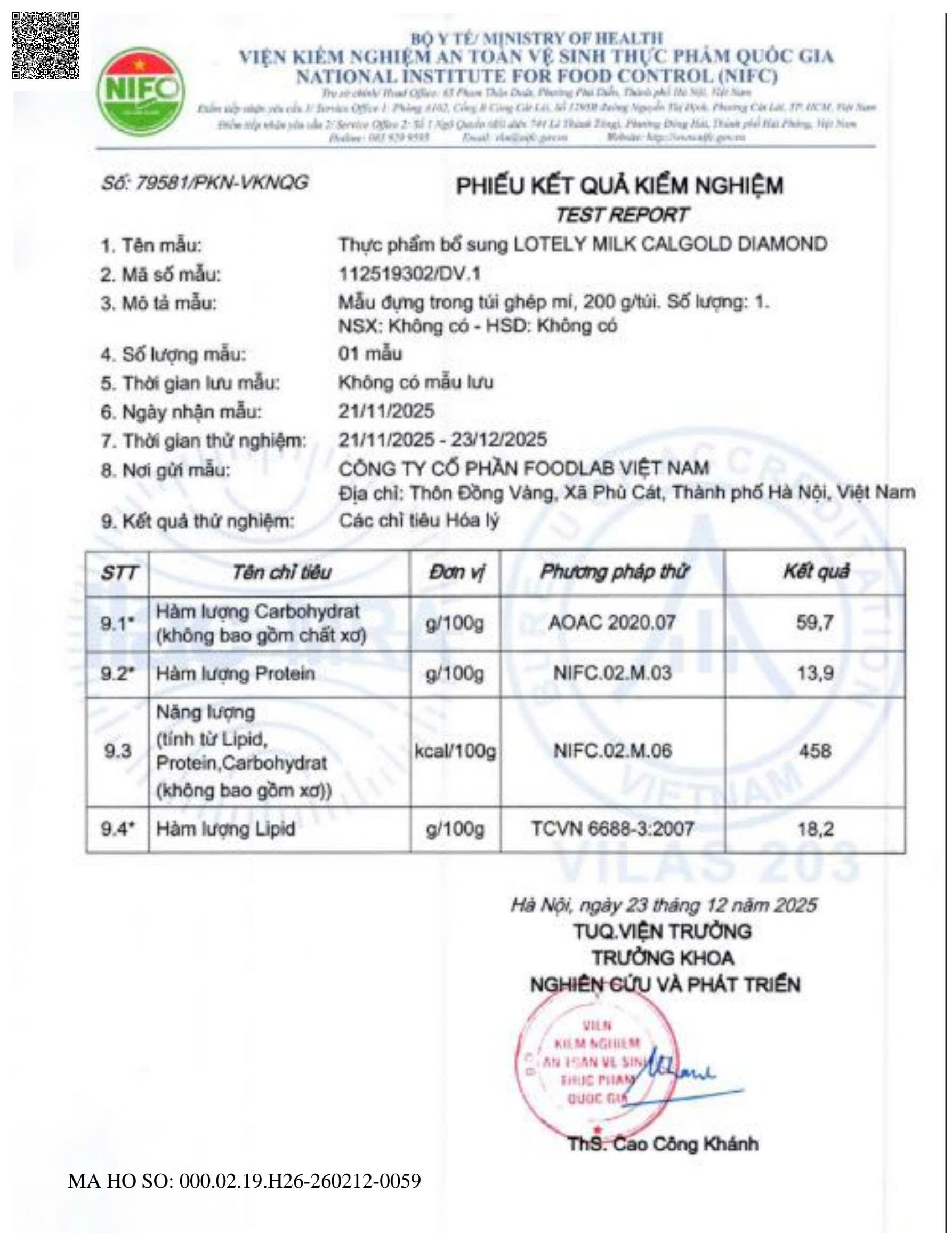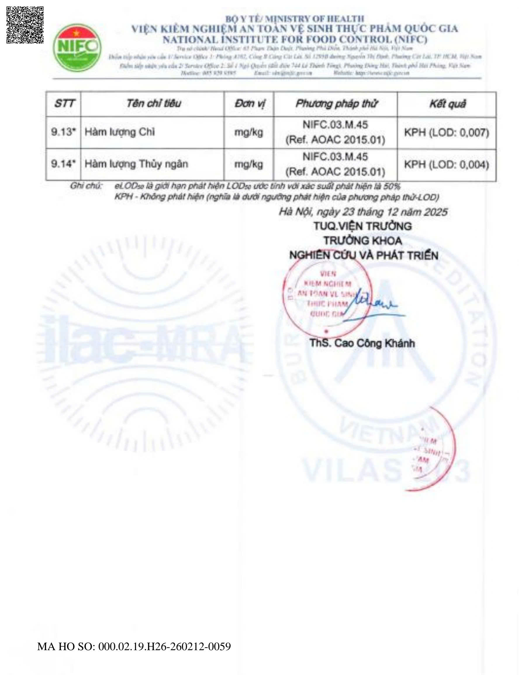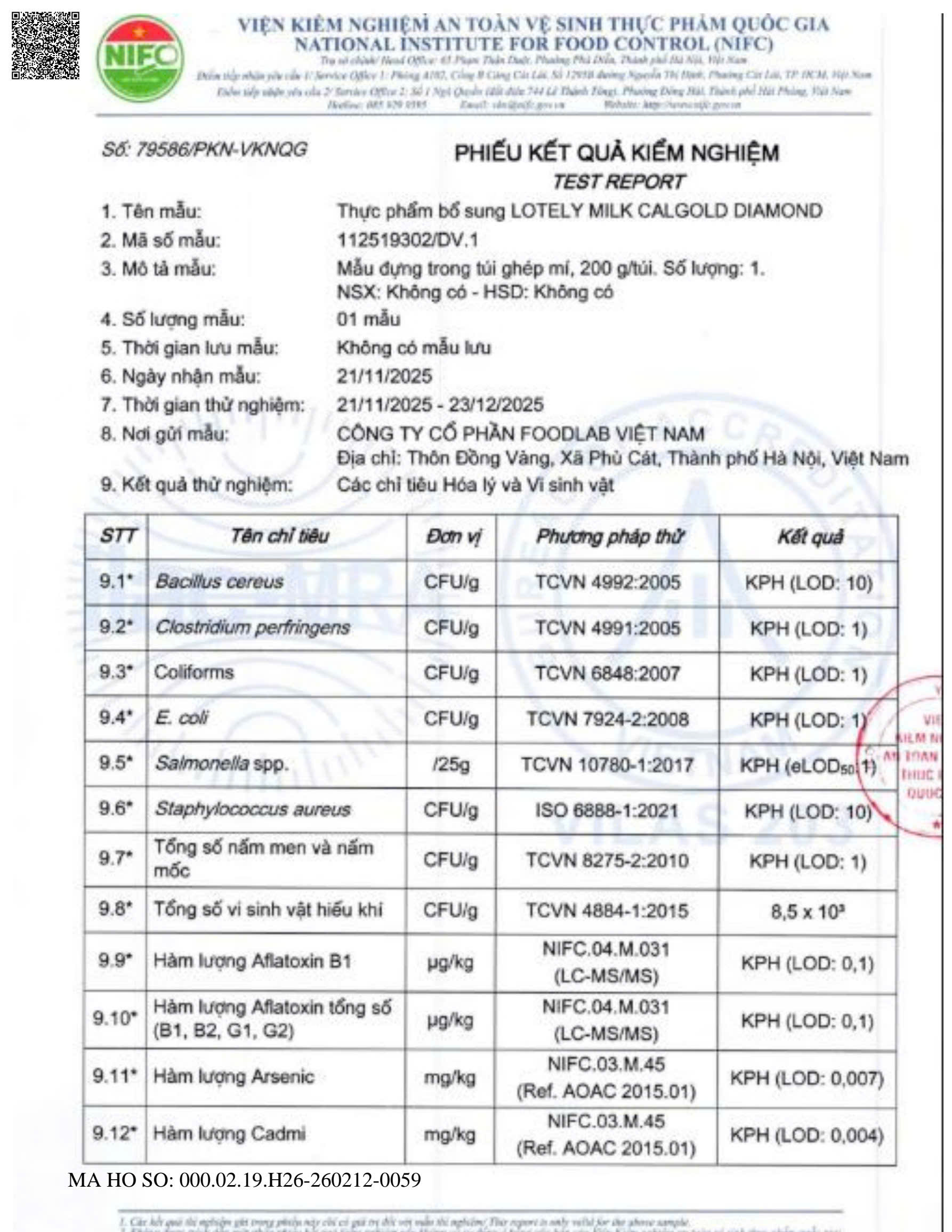 KẾT QUẢ KIỂM NGHIỆM