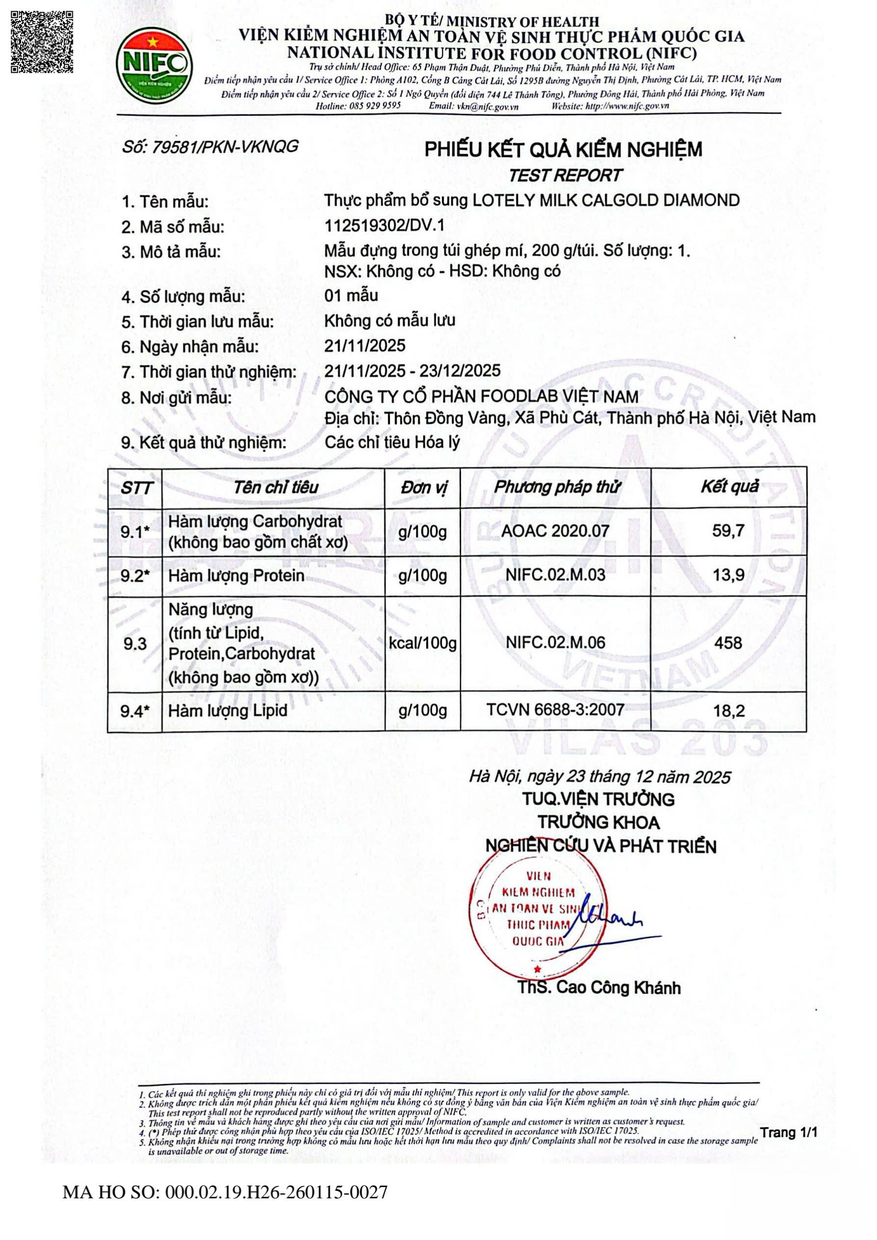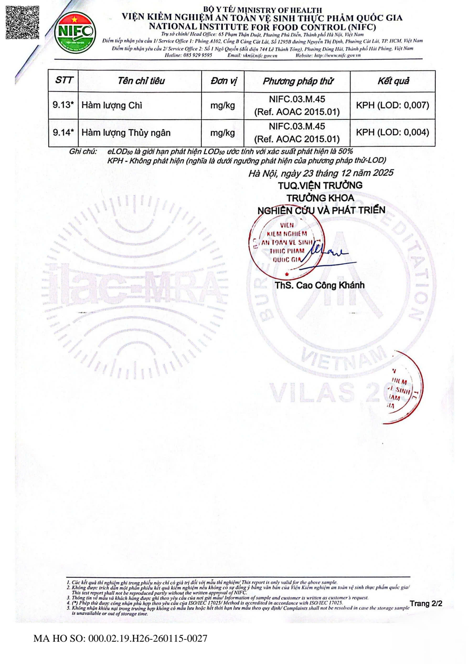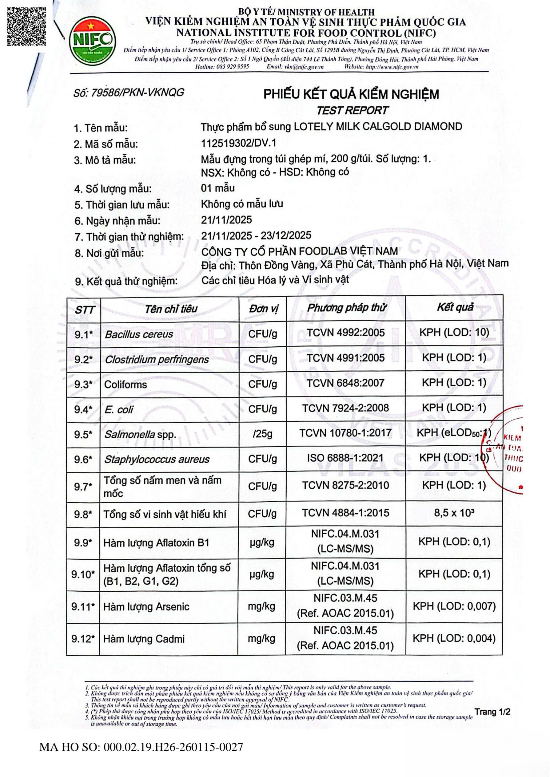 KẾT QUẢ KIỂM NGHIỆM